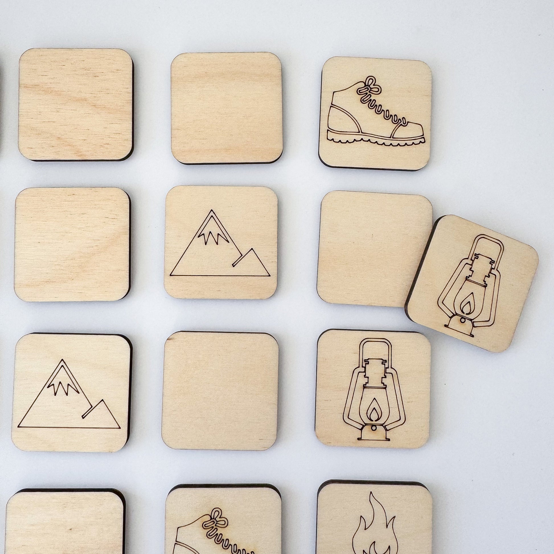 Our adventure themed matching memory game makes an enchanting addition to your family's game collection! With 24 beautifully crafted wooden tiles featuring 12 pairs of adventure and nature-inspired motifs, this game promises endless hours of fun and cognitive stimulation.