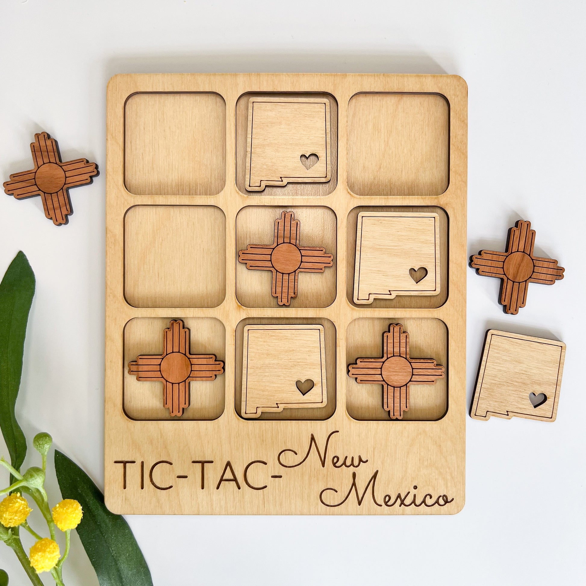 Crafted for quality and designed for New Mexico enthusiasts, this Tic Tac Toe board is the perfect addition to family gatherings, game nights, and a delightful piece of decor for your space. Bring the spirit of New Mexico's cultural richness and desert beauty to your living room, and let the games capture the essence of the Land of Enchantment!